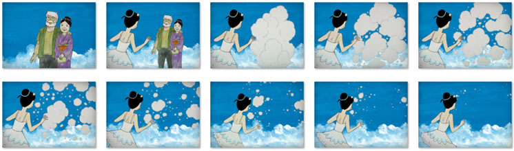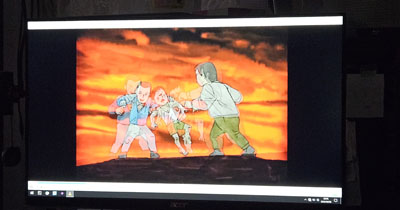 当時は 8mmカメラによる撮影だったので、室内で絵を撮影した後、