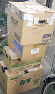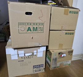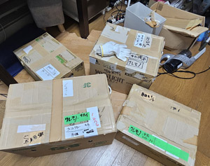 ●金沢から「座敷牢」仕掛け道具類を詰めた段ボールが霧生館に到着。