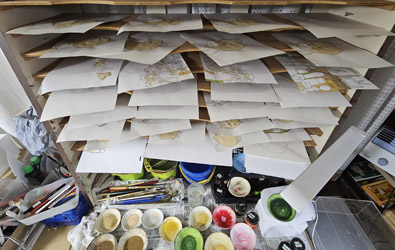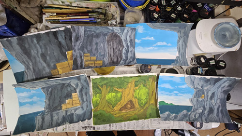 "Underground labyrinth secret picture book: BOO", "Primary colors hand-painted picture scroll: Zashikiro" progress